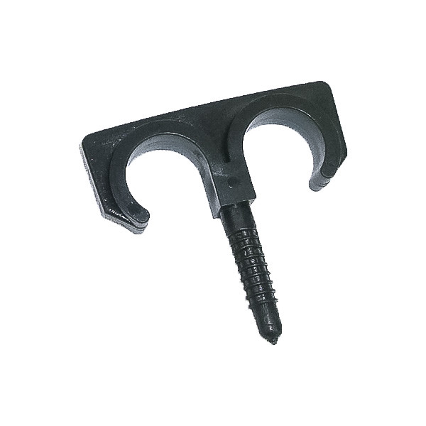 Nylon leidingbeugel. Eenvoudige bevestiging van buizen en kabels in een boorgat van 6 mm. Schroeven, pluggen en andere beugels vervallen. Geen gevaar voor beschadiging van de te bevestigen leiding, omdat de kunststof beugel flexibel is. Omdat de leiding in de haakbeugel vastgeklikt wordt, is bevestiging op de grond, aan de wand en aan het plafond mogelijk.
