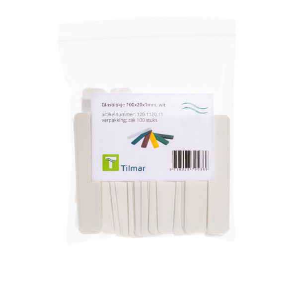 Glasblokje 100x20x1mm, wit (zak 100 stuks) - Tilmar
