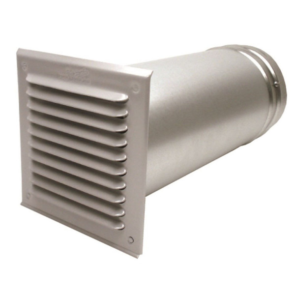Behuizing: sendzimir verzinkte plaat, klep uit aluminium en rubber zitting, waarop de klep geruisloos terugvalt, buitenrooster uit aluminium.