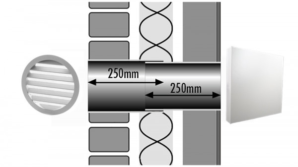 Middelgrote muurdoorvoerset voor toevoer en afvoer van ventilatielucht. Goed ventileren met deze prima ventilatie combinatie gaat zeker lukken.