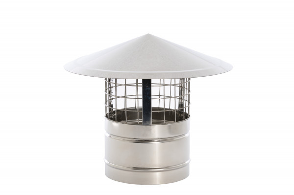 RVS regenkap met gaas voor plaatsing op ventilatiekanalen en schoorstenen. Voorkomt regeninslag en het kleindierengaas houdt vogels alsmede blad tegen.Diverse modellen leverbaar, op aanvraag ook op kleur leverbaar.