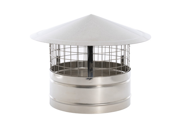 RVS regenkap met gaas voor plaatsing op ventilatiekanalen en schoorstenen. Voorkomt regeninslag en het kleindierengaas houdt vogels alsmede blad tegen.Diverse modellen leverbaar, op aanvraag ook op kleur leverbaar.