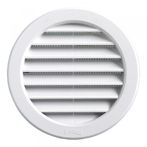 Ronde ABS kunststof roosters met flens voor inbouw in buizen en gaten, inclusief insektengaas dat eventueel eenvoudig verwijderd kan worden. De roosters zijn regenwerend, geschikt voor zowel binnen als buiten toepassing.