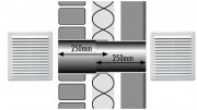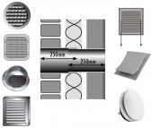 Het rooster is voorzien van regenwerende schoepen en insektengaas, geschikt voor binnen en buiten toepassing.