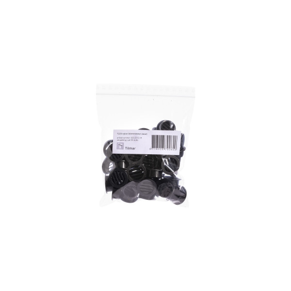 T225 nylon klemrooster zwart, gatmaat ø25mm, zak 50st