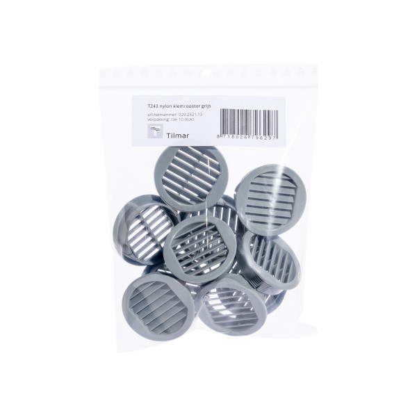 T243 nylon klemrooster grijs, gatmaat ø43mm, zak 10st