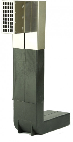 Speciaal RVS verloopstuk om alle T172 inmetselbakjes verticaal te kunnen plaatsen in staand metselwerk. Verloopstuk wordt voorgemonteerd geleverd op een aangepaste kunststof vloerventilatiekoker.